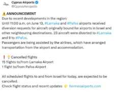 Η ισραηλινή επίθεση κατά του Ιράν προκαλεί σοβαρές επιπτώσεις στις αερομεταφορές και κινητοποιεί μηχανισμούς ασφαλείας για τους Έλληνες στην περιοχή. Σημαντικές αναταράξεις προκάλεσε στο κυπριακό εναέριο δίκτυο η σημερινή επίθεση του Ισραήλ κατά του Ιράν, με τα Αεροδρόμια Λάρνακας και Πάφου να δέχονται δεκάδες αιτήματα για εκτροπές πτήσεων. Σύμφωνα με ανακοίνωση … [Περισσότερα...]