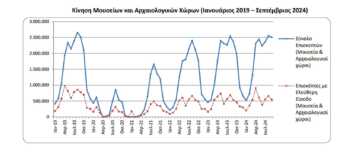Η ΕΛΣΤΑΤ ανακοίνωσε σημαντική αύξηση επισκεπτών και εσόδων των μουσείων (15,3%) και των αρχαιολογικών χώρων (5,7%) το 9μηνο του 2024, συγκριτικά με το αντίστοιχο του 2023. Η Ελληνική Στατιστική Αρχή (ΕΛΣΤΑΤ) ανακοίνωσε τα αποτελέσματα της Έρευνας Κίνησης Μουσείων και Αρχαιολογικών Χώρων για τον Σεπτέμβριο 2024. Πιο αναλυτικά: Κατά το μήνα Σεπτέμβριο 2024 σε … [Περισσότερα...]